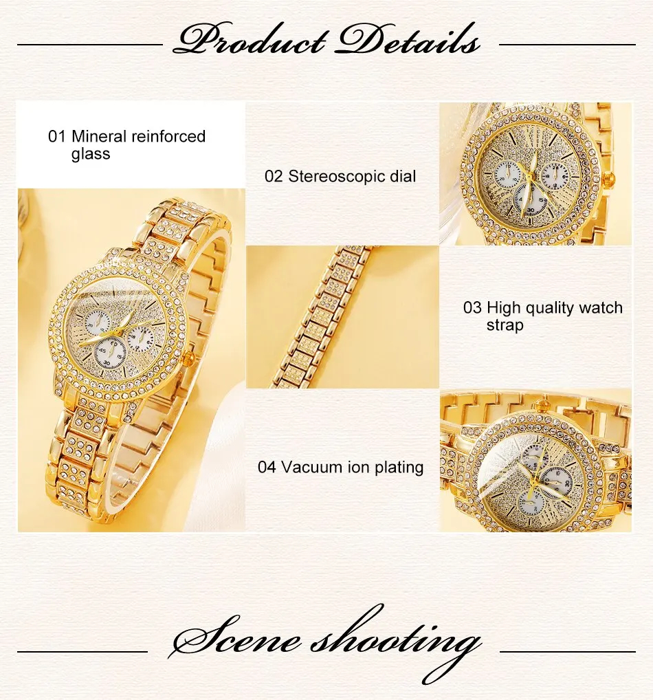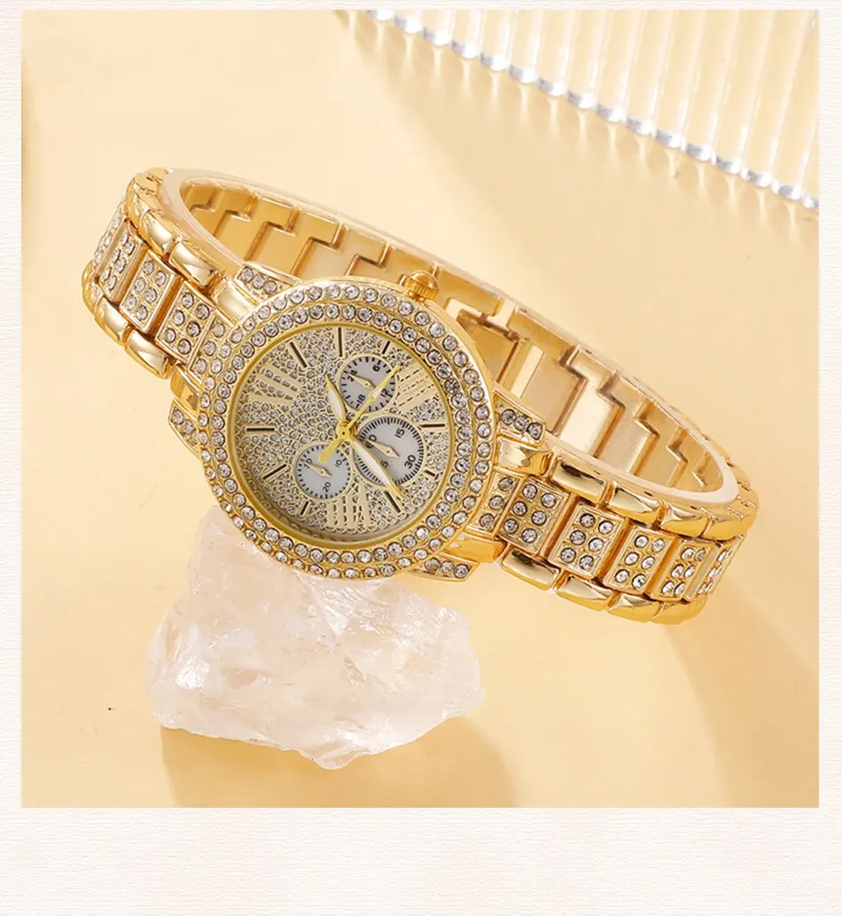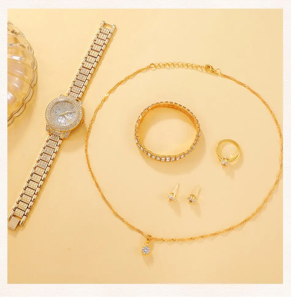 Kit 5 peças feminino: Relógio, pulseira, brinco, colar e anel